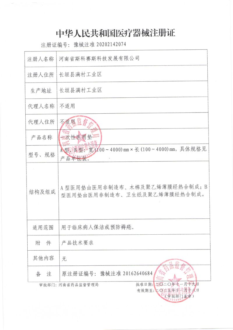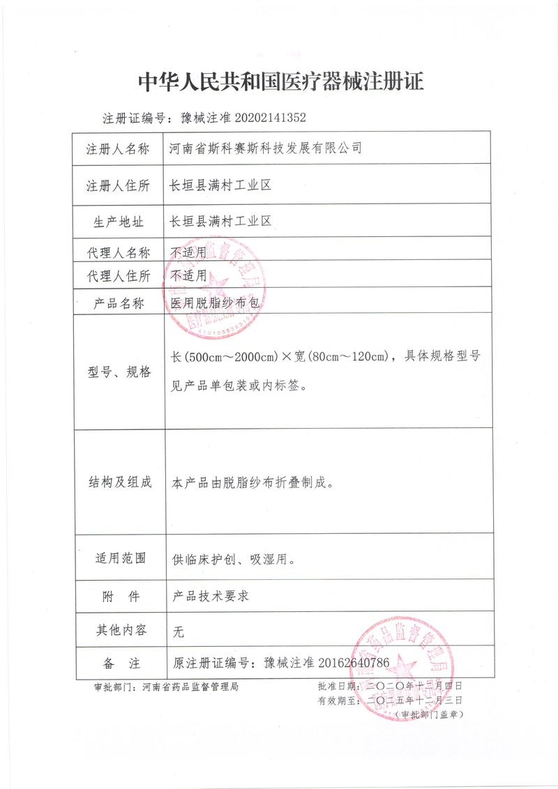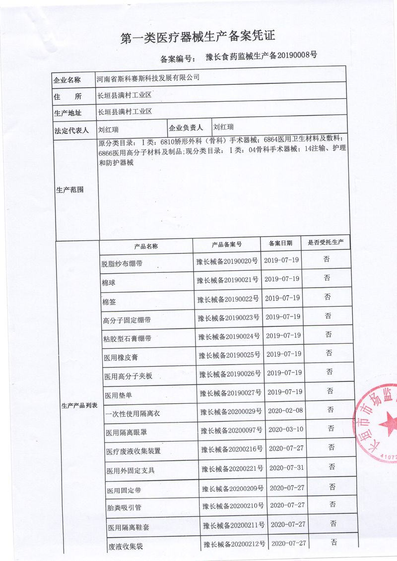 河南省斯科賽斯科技發(fā)展有限公司創(chuàng)建于 2011 年,位于“中國醫(yī)療耗材之都”- 河南省長垣縣,西臨 308 省道,南靠新菏鐵路,北依長濟(jì)高速,交通便捷,經(jīng)濟(jì)發(fā)達(dá),環(huán)境優(yōu)美。斯科賽斯積極進(jìn)入醫(yī)療健康和服務(wù)領(lǐng)域,秉承為用戶創(chuàng)造價值的理念,專注于醫(yī)用耗材解決方案的研發(fā)和運(yùn)營,并為用戶提供完善的產(chǎn)品解決方案;  斯科賽斯主要生產(chǎn)醫(yī)用麻醉系列、醫(yī)用高分子系列、醫(yī)用敷料包系列、醫(yī)用無紡布系列、醫(yī)用防護(hù)系列、醫(yī)用脫脂棉系列、生物材料制品類等七大類、100 多個品種、400 多個規(guī)格的產(chǎn)品。公司占地面積約 30000 平方米,建筑面積20000 平方米,擁有 10 萬級的凈化車間總面積 10000 平方米。擁有國際先進(jìn)水平的生產(chǎn)設(shè)備和檢測儀器,技術(shù)裝備精良,檢測手段完善,為醫(yī)療行業(yè)的不斷發(fā)展進(jìn)步提供保障。公司順利通過 ISO9001、ISO13485 質(zhì)量管理體系認(rèn)證?! ∷箍瀑愃箞?jiān)持研發(fā)高科技新產(chǎn)品,力爭在醫(yī)療器械關(guān)鍵領(lǐng)域取得技術(shù)和研發(fā)的重大突破;立足國內(nèi)和國際兩個市場,逐步實(shí)現(xiàn)管理理念、經(jīng)營機(jī)制、人力資源、技術(shù)、產(chǎn)品、市場等全方位對接,提高企業(yè)的核心競爭力;過去的歲月里,斯科賽斯砥礪前行,誠信務(wù)實(shí),銳意進(jìn)取,不斷創(chuàng)新,用自己的睿智和辛勞,以富有責(zé)任感的使命,在探索中追求,在追求中超越,致力于成為值得信賴的醫(yī)療用品生產(chǎn)企業(yè)!在未來的日子里,斯科賽斯將一如既往豪情滿懷,信心百倍,攜手并肩,執(zhí)著追求,向更高的的目標(biāo)前進(jìn),鑄造新的輝煌!